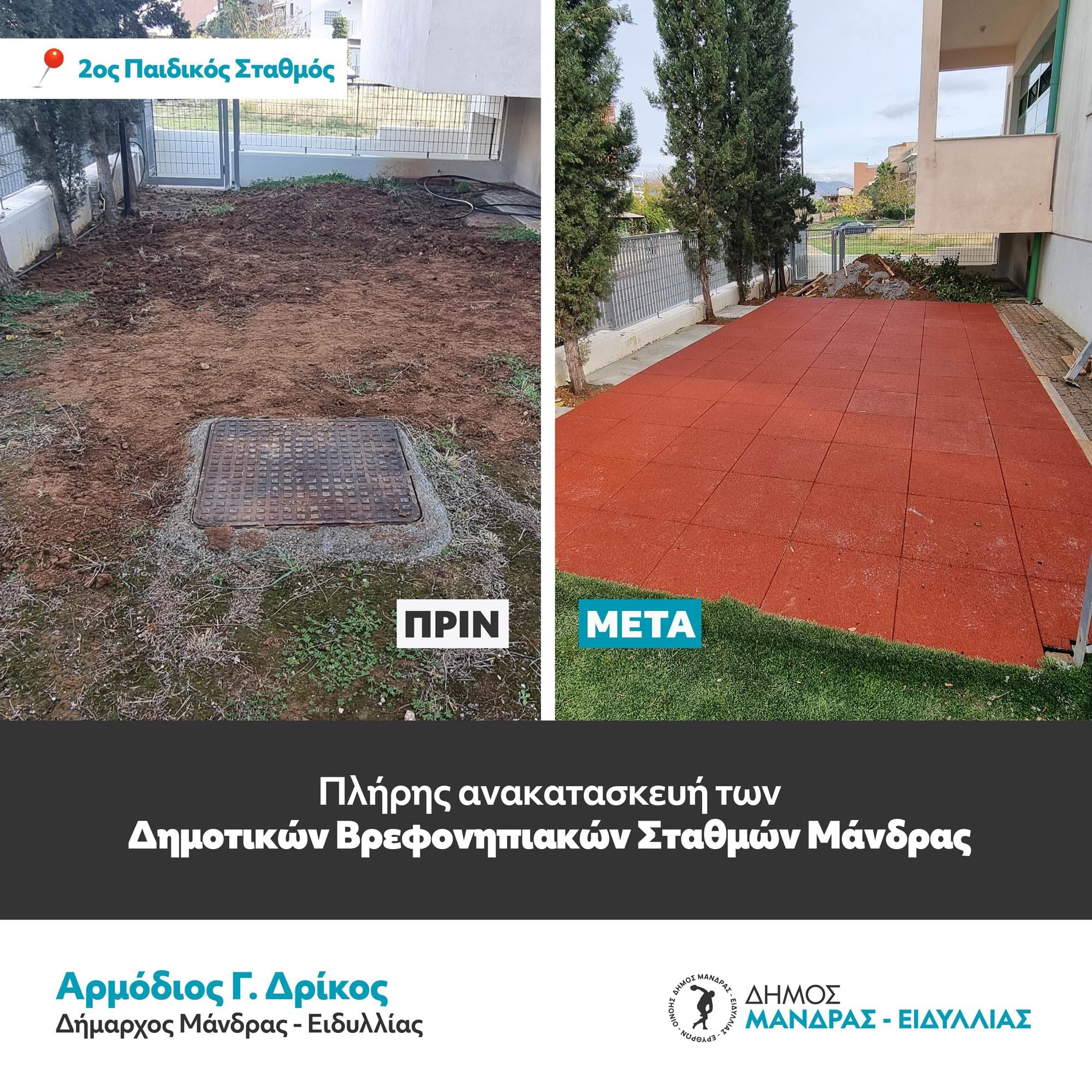 Μία ακόμη δέσμευσή μας, ολοκληρώθηκε με επιτυχία, με την πραγματοποίηση ενός έργου μεγάλης σημασίας, με την ολοκλήρωση των απαραίτητων εργασιών στους δύο Βρεφονηπιακούς Σταθμούς Μάνδρας.