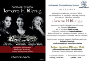 Ώρα 18:00Μέσα από λόγο, συναίσθημα και παράδοση, το «Γλυκύ Έαρ» μας οδηγεί στο πνεύμα των ημερών της Μεγάλης Εβδομάδας, δημιουργώντας μια ιδιαίτερη ατμόσφαιρα κατάνυξης και εσωτερικής γαλήνης.