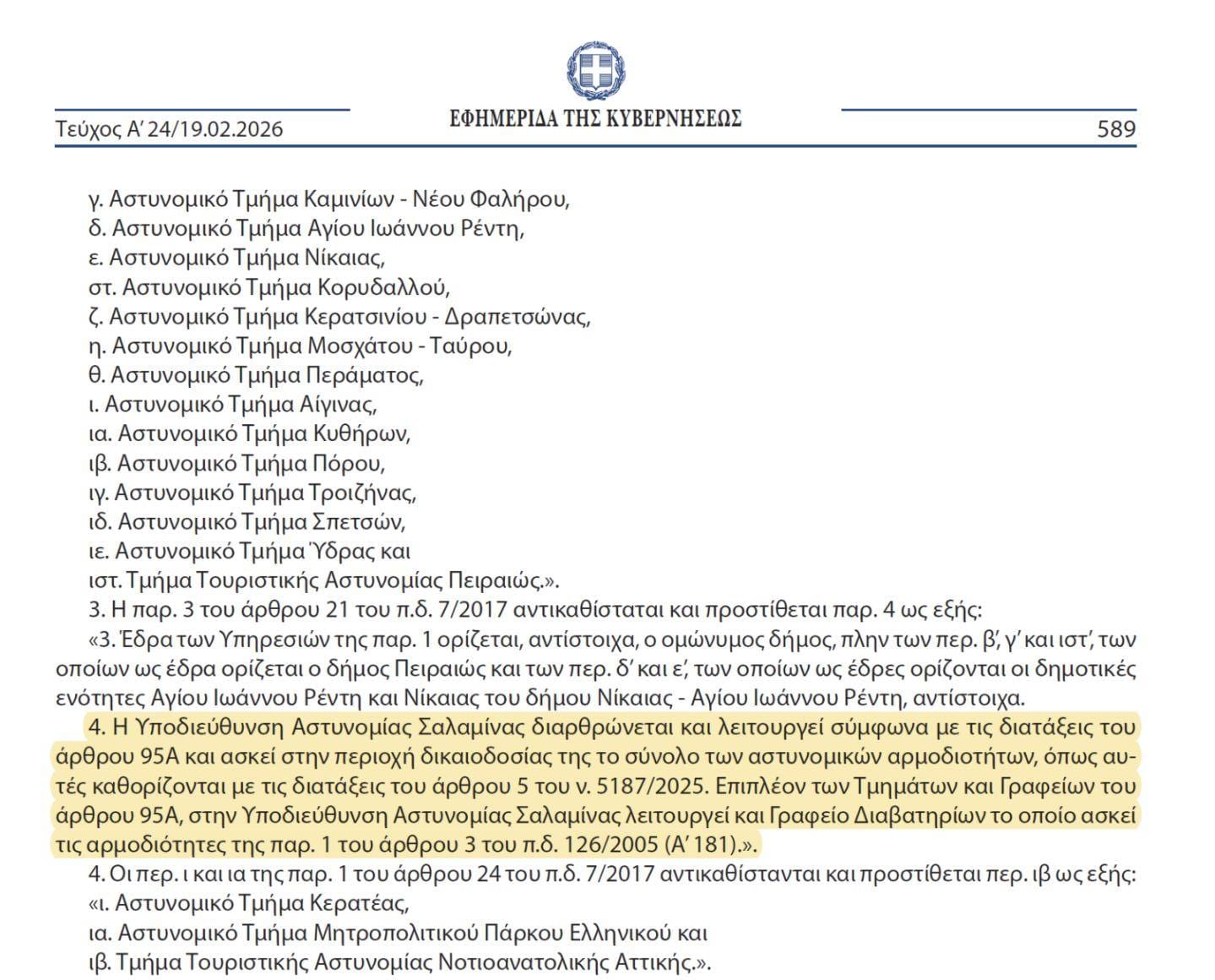 "Όλο αυτό τον καιρό είμαστε σε συνεργασία με το Υπουργείο Προστασίας του Πολίτη για το θέμα της αστυνόμευσης στην Σαλαμίνα και με σοβαρότητα τονίζουμε τις ανάγκες του τόπου μας.