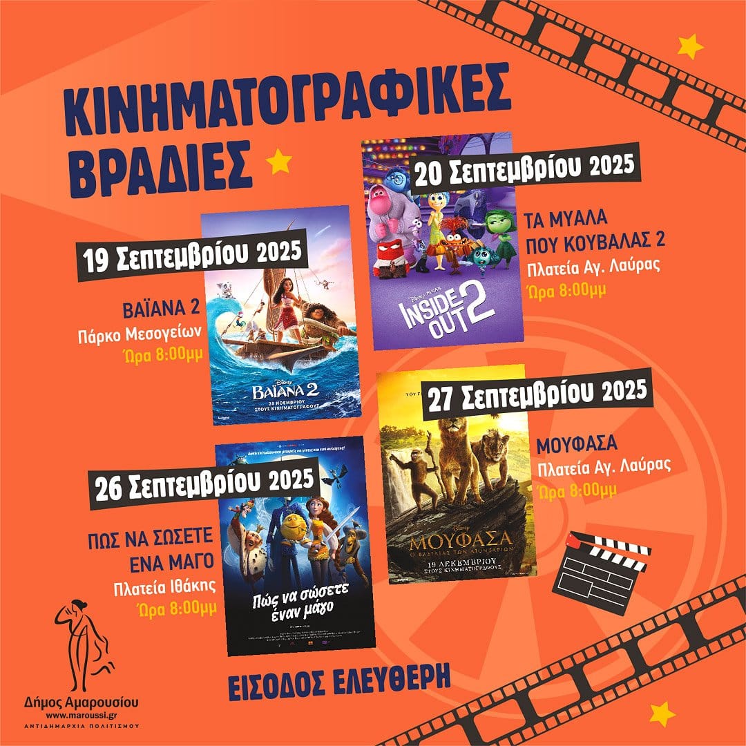 Κινηματογραφικές βραδιές τον Σεπτέμβριο στο Μαρούσι